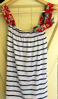 Longer tanks and tops are more fashion forward this season. Look for something in a great color (maybe tangerine or aqua). Wearing the right size, silhouette and color will always make you look thinner, more youthful and completely on trend! Check out this one that was re-purposed from items found at Goodwill!