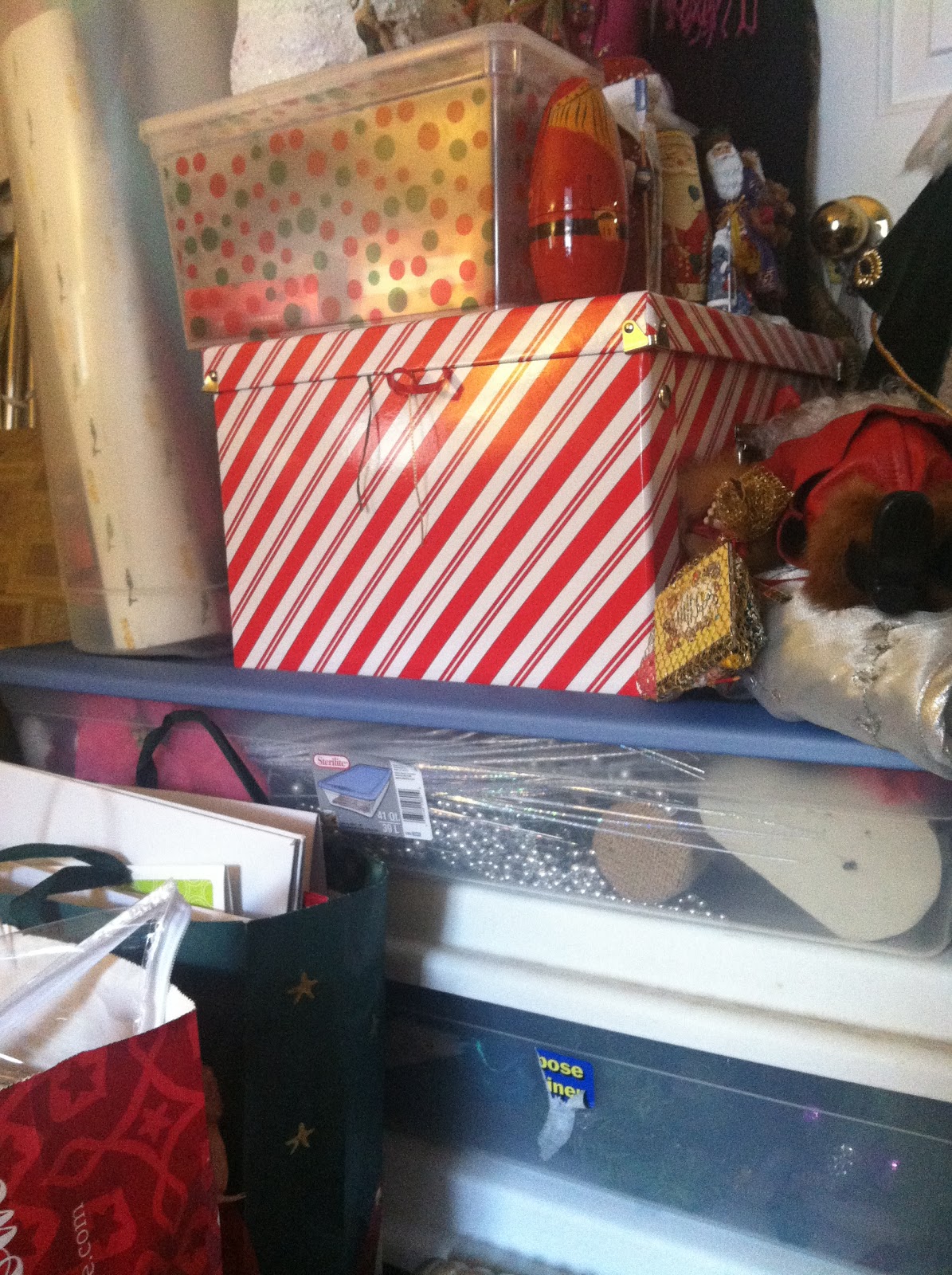 My goal is simple: get my home to a Christmas-decoration-free zone. Inevitably as I started going through things, I get side tracked and unmotivated. This year it occurred to me ‘why don’t I eliminate some of this holiday clutter and donate it to Goodwill’. BRILLANT!