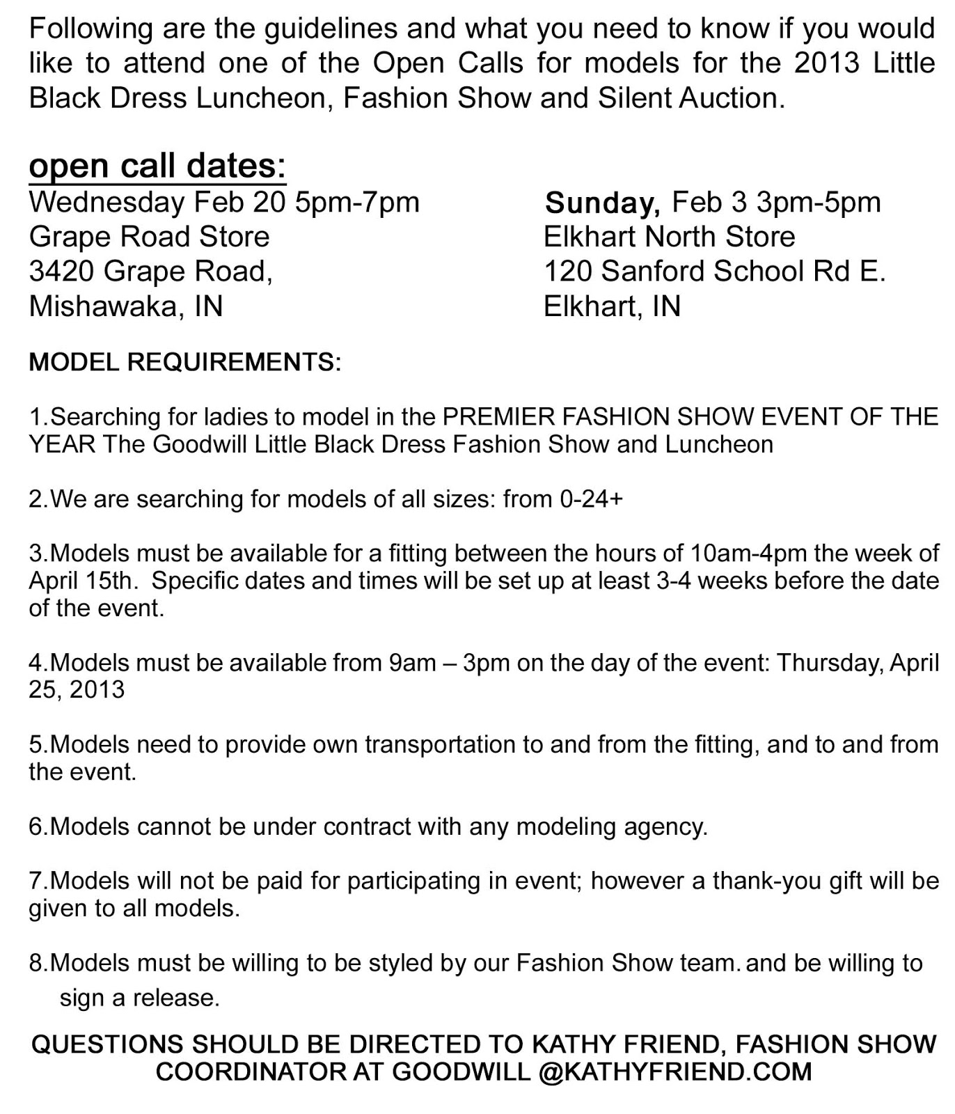 MODEL SEARCH open call! Posted on January 29, 2013 by Ever wanted to be a model? Interested in participating in the biggest and best Runway Fashion Show of the year? Attend one of the upcoming OPEN CALLS! MODEL REQUIREMENTS AND OTHER INFO