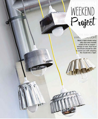 Who says you need a lampshade to even create a light. Have you ever thought of using a cake or jelly mold for a fun industrial fixture. It is rare that I stop in Goodwill and don’t spy a cake mold with pretty fluted edges and they are often priced at a dollar or less. Add a spray paint that adds a hammered metal appearance to them or go vintage with a pretty aqua blue. These light fixtures are not only unique, but they utilized an item that is frequently donated to the store. (Source: Poppytalk)