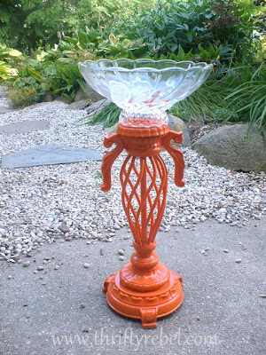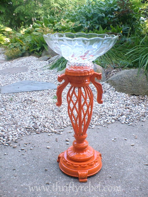 Sometimes one has to rethink the original purpose of a thrift store item, that is why I am IN LOVE with this idea to turn a lamp into a birdbath for the backyard. With this DIY, you simply spray paint your base in a fun color to match the colors in your patio set, and then add a bowl on top to create the perfect little birdbath for the backyard. Why spend a fortune at the garden center, when a birdbath can be made for a fraction of the price? (Source: Thrifty Rebel)