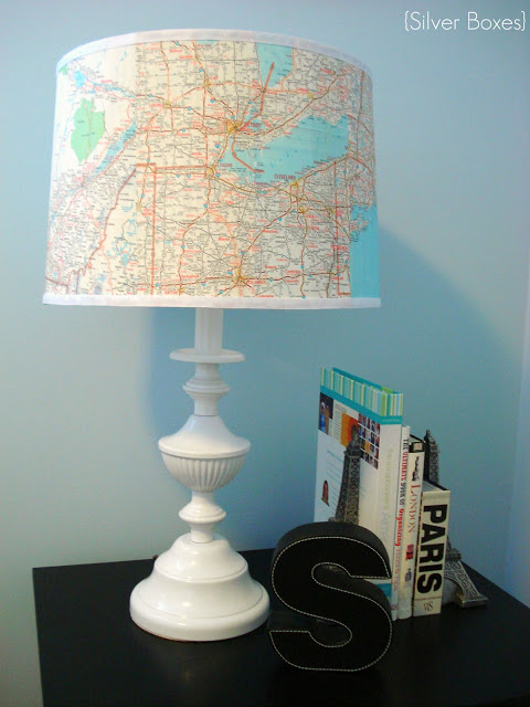 Map crafts are just as popular as the book crafts we highlighted last month and I absolutely love this DIY lampshade makeover made from a map. Select a map from a location that is special to you, perhaps where you honeymooned, where you grew up, your favorite family vacation, or where you live right now, and make an homage to that location with this sweet lamp. Finish it with a grosgrain ribbon or an embellished edge ribbon trim from the craft store. (Source: Silver Boxes)