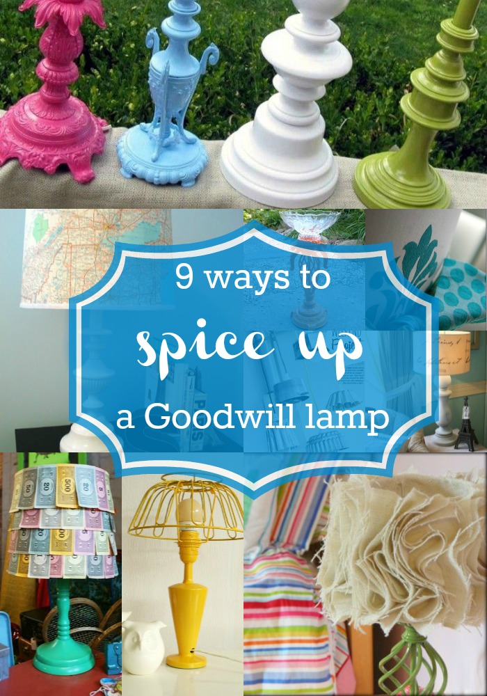 One walk through the aisles of Goodwill and I guarantee you will find a handful of great lamp choices just begging for a fun makeover that can dress up a corner in your home. To inspire you, I have gathered nine of my favorite ways to spice up a Goodwill lamp. These ideas are so inspiring, in fact, that I can’t wait to run over to my Goodwill store to snag a lamp for myself.