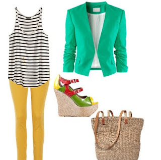 I love my colored skinny jeans, especially the pair I got for a few dollars at Goodwill!  I like to wear a trendy stripe tee with them…here I added the green jacket to one of my favorite outfits to make it luncheon-worthy, or cocktail-worthy, or grocery shopping-worthy…well, you get the idea!