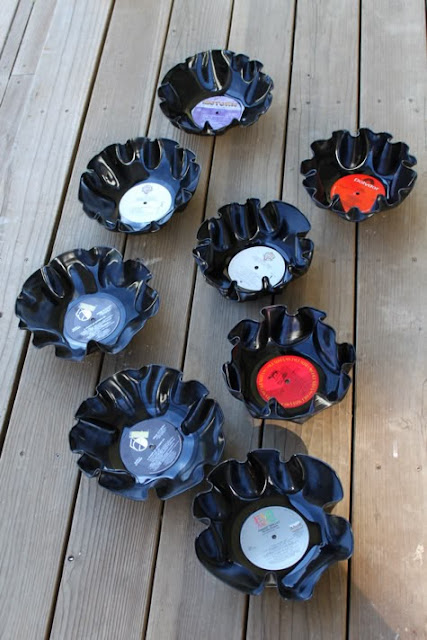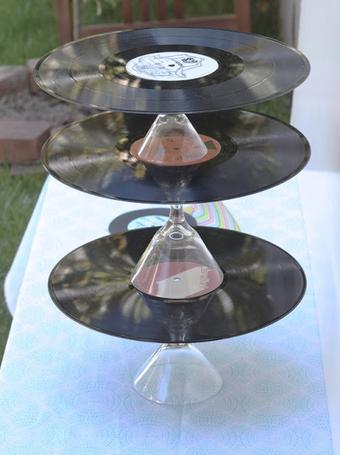 Looking to add a fun fluted bowl to your party table? Just as was showcased in the wall decal craft that I talked about here, you can also shape and mold records into bowls to adorn your tables at parties. This easy DIY requires no cutting of records, but simply a heating and shaping of them to create these adorable bowls. I can picture popcorn, candy, or nuts as fun appetizers for a party. Check out Prudent Baby for this easy record bowl tutorial.
