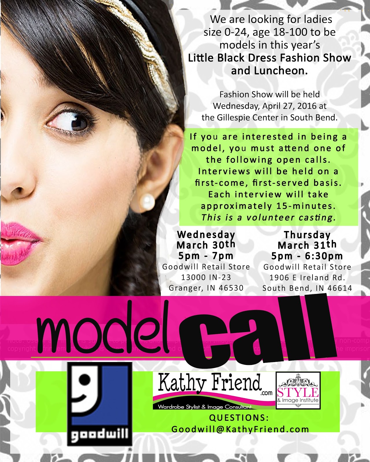 We are looking for ladies who are at least 18 years old, between the sizes of 0 – 24+. No modeling experience necessary (actually, we prefer REAL ladies who love Goodwill to be our models!).
